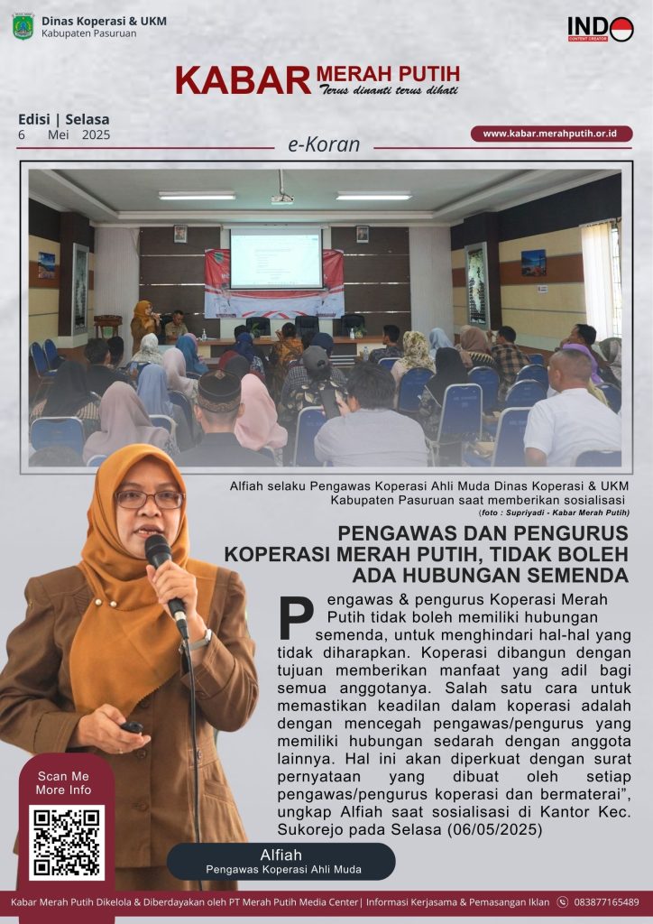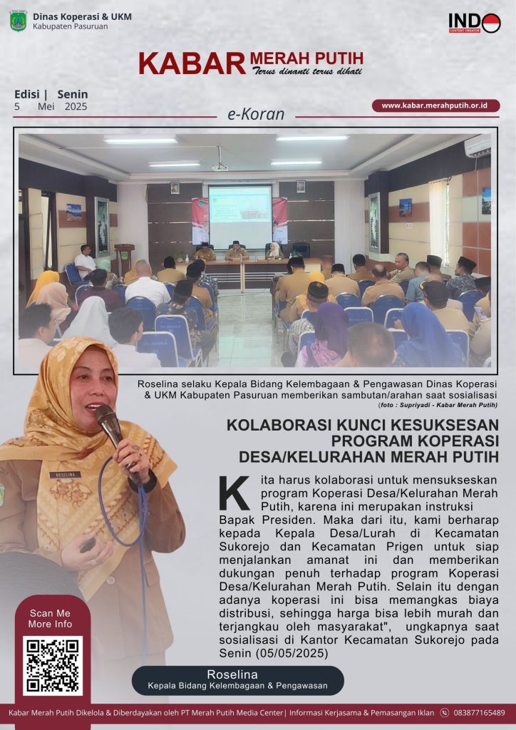 Pasuruan, 6 Mei 2025 — Gema semangat koperasi menggema dari Kantor Kecamatan Sukorejo selama dua hari, Senin–Selasa (5–6 Mei 2025), dalam kegiatan Sosialisasi Pembentukan Koperasi Desa/Kelurahan Merah Putih yang diselenggarakan oleh Dinas Koperasi dan UKM Kabupaten Pasuruan. Kegiatan ini menjadi bagian dari langkah strategis mendukung program nasional Presiden RI dalam memperkuat ekonomi rakyat berbasis desa.