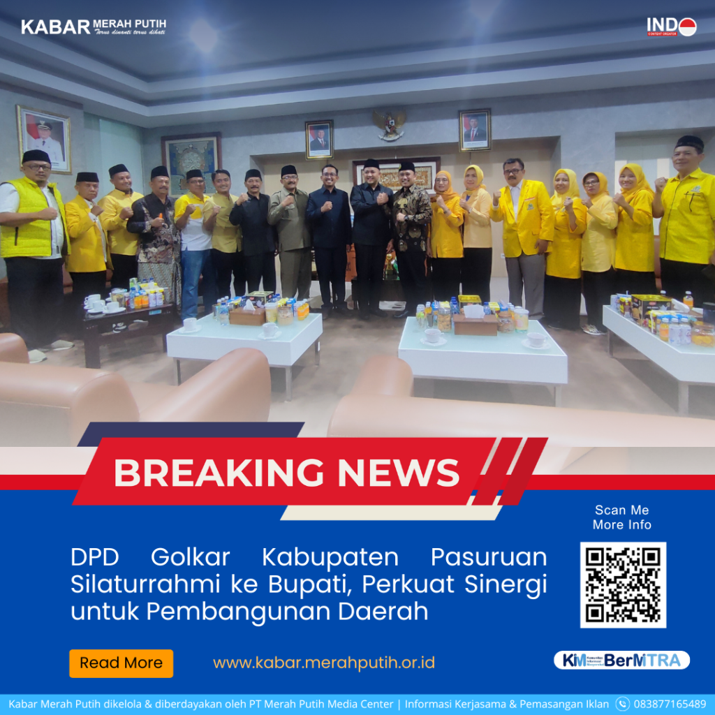 Pasuruan, 27 Oktober 2025 — Pengurus Dewan Pimpinan Daerah (DPD) Partai Golkar Kabupaten Pasuruan melakukan silaturrahmi ke Bupati Pasuruan di Kantor Bupati Pasuruan, Senin (27/10/2025).