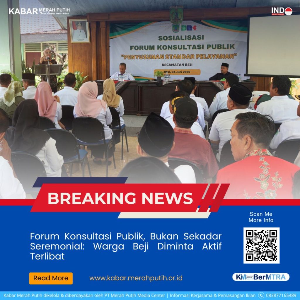 Beji, 4 Juni 2025 – Pemerintah Kecamatan Beji menggelar kegiatan Sosialisasi Forum Konsultasi Publik pada Rabu (4/6) di Kantor Kecamatan