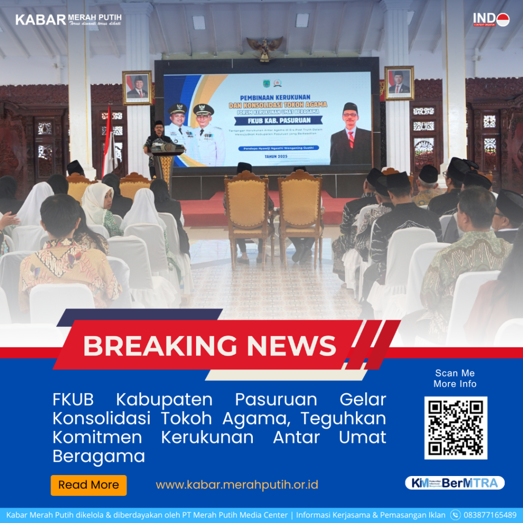 Pasuruan – Forum Kerukunan Umat Beragama (FKUB) Kabupaten Pasuruan menggelar kegiatan Pembinaan Kerukunan & Konsolidasi Tokoh Agama pada Selasa, 1